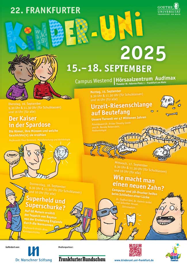 Hier finden Sie ein Überblick aller vergangenen Veranstaltungen der Frankfurter Kinder-Uni. Klicken Sie auf das jeweilige Plakat, um weitere Infos zu erhalten.